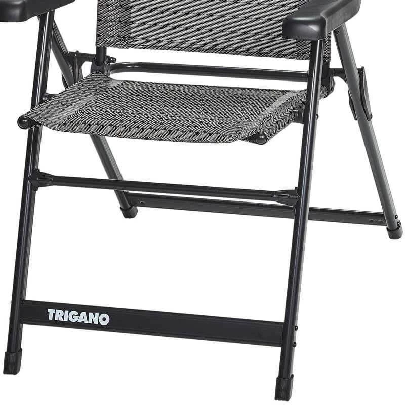 Son armature en aluminium rend la chaise légère mais très solide, elle peut accueillir jusqu’à 120kg.