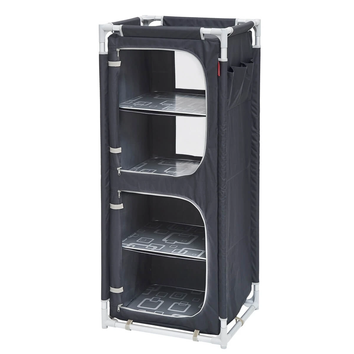 Découvrez notre meuble rangement camping aux couleurs gris/noir.
